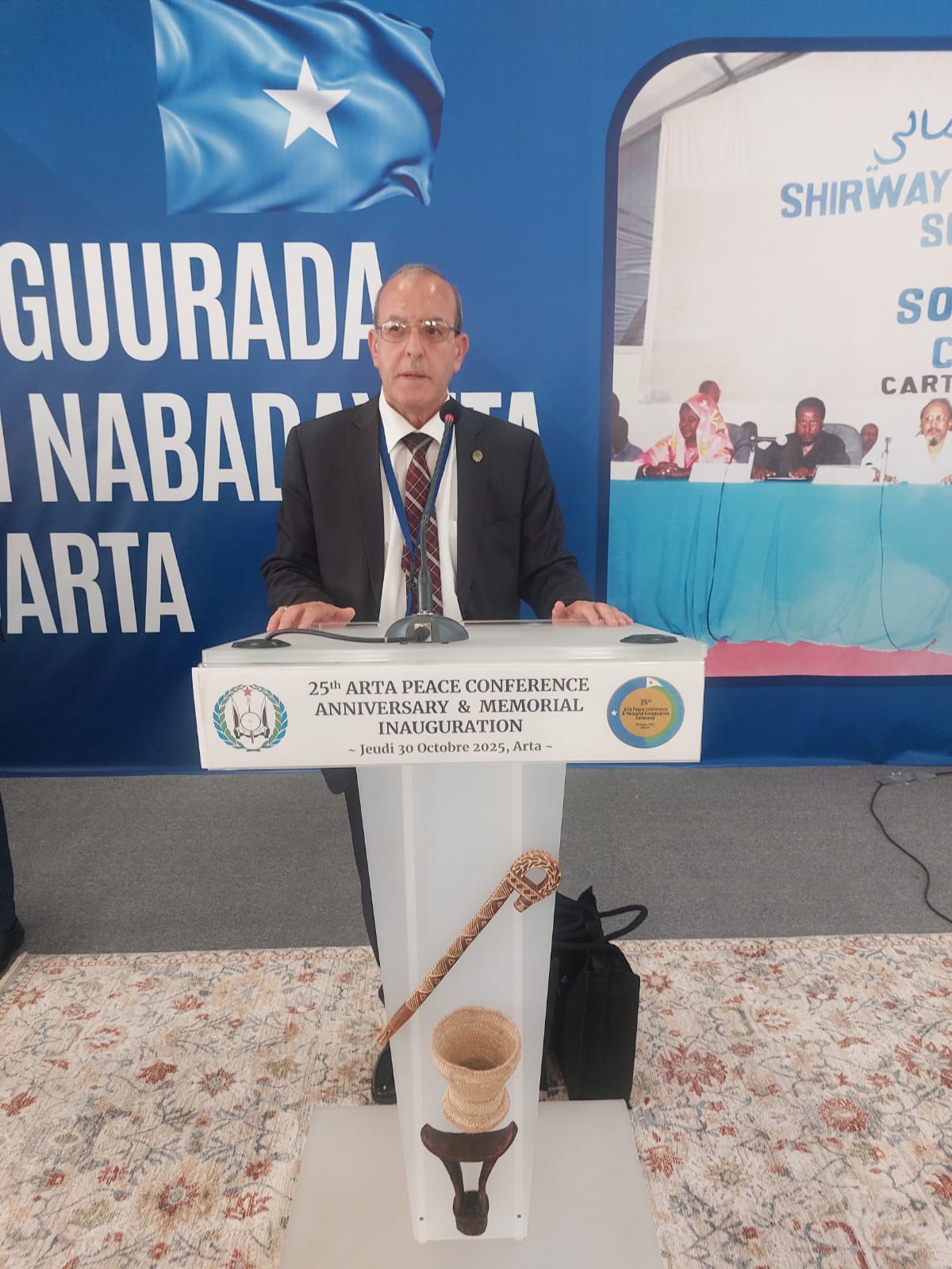 الأمانة العامة تشارك في افتتاح نصب عرتا التذكاري للسلام |  | 2025/10/30 بتكليف من معالي السيد أحمد أبو الغيط أمين عام جامعة الدول العربية، شارك وفد من الأمانة العامة لجامعة الدول العربية برئاسة سعادة السفير محند صالح لعجوزي الأمين العام المساعد لجامعة الدول العربية مدير عام الصندوق العربي للمعونة الفنية للدول الإفريقية وعضوية السيد زيد الصبان مدير إدارة دول القرن الإفريقي والسودان في مراسم افتتاح نصب عرتا التذكاري للسلام بتاريخ 30 أكتوبر 2025 في جمهورية جيبوتي