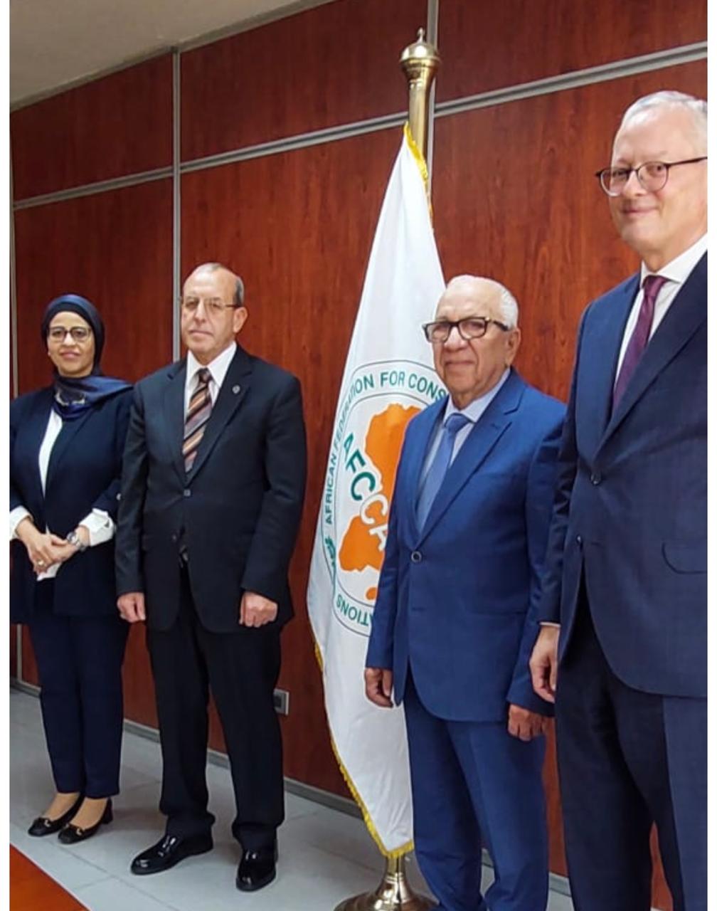 مدير عام الصندوق العربي للمعونة الفنية للدول الإفريقية يلتقي برئيس الإتحاد الإفريقي لمنظمات مقاولي التشييد |  | 2025/11/30 قام السفير محند صالح لعجوزي الأمين العام المساعد لجامعة الدول العربية مدير عام الصندوق العربي للمعونة الفنية للدول الافريقية بزيارة مجاملة إلى المهندس حسن عبد العزيز حسن رئيس الإتحاد الإفريقي لمنظمات مقاولي التشييد نائب وزير الإسكان سابقاً. حضر اللقاء، الذي جرى بمقر الإتحاد بمدينة نصر بالقاهرة، سعادة السفير حاتم تاج الدين الأمين العام للاتحاد. | | المزيد |