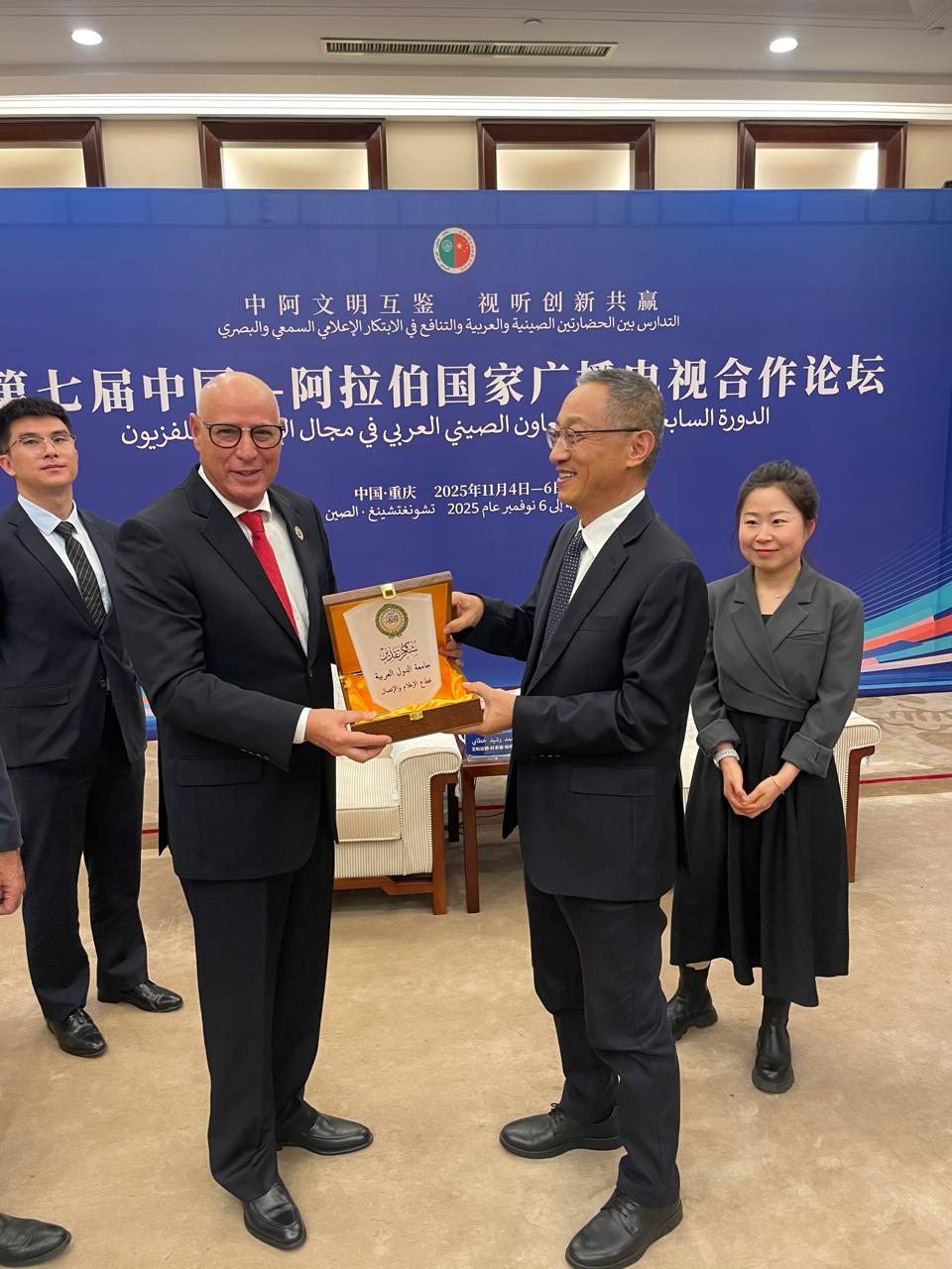 البيان المشترك للدورة السابعة لملتقى التعاون العربي الصيني في مجال الإذاعة والتلفزيون |  | 2025/11/05 عقدت الدورة السابعة لملتقى التعاون العربي الصيني في مجال الإذاعة والتلفزيون في تشونغتشينغ خلال الفترة من 4 إلى 6 نوفمبر 2025، بمشاركة كل من الهيئة الوطنية الصينية للإذاعة والتلفزيون، وحكومة بلدية تشونغتشينغ الشعبية، والأمانة العامة لجامعة الدول العربية، وممثلي الجهات المعنية في الدول العربية، واتحاد إذاعات الدول العربية.